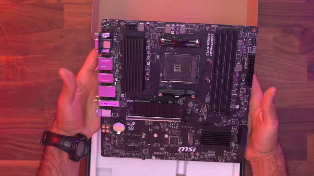 We selected a Micro-ATX board that punches above its weight. Even in a Budget PC, connectivity is vital. This board includes built-in Wi-Fi and Bluetooth, saving the user from buying separate adapters. It also features a heatsink for the primary M.2 slot, ensuring the SSD maintains peak speeds without thermal throttling.